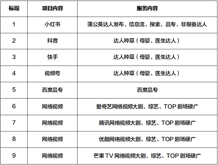 2、网络视频广告投标人的注册资金不少于1000万元,小红书广告投标人的资金不少于500万元,百度广告投标人的注册资金不少于200万元,其余各项投标人的注册资金不少于100万元;